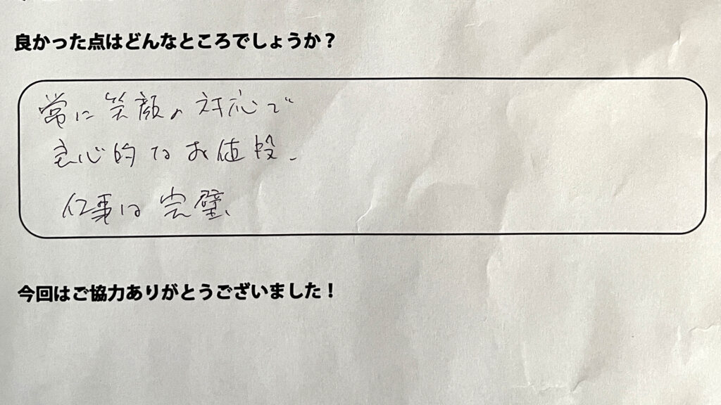 この度はありがとうございました!また何かお困りごとあればご相談ください!