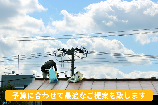 例えば屋根に問題がある場合、必ずしも葺き替えなどの大規模工事が必要とは限りません。最低限の修理でも十分であると判断すれば、最低限の修理をご提案し、お客様の費用負担を最小限に抑えるようしております。